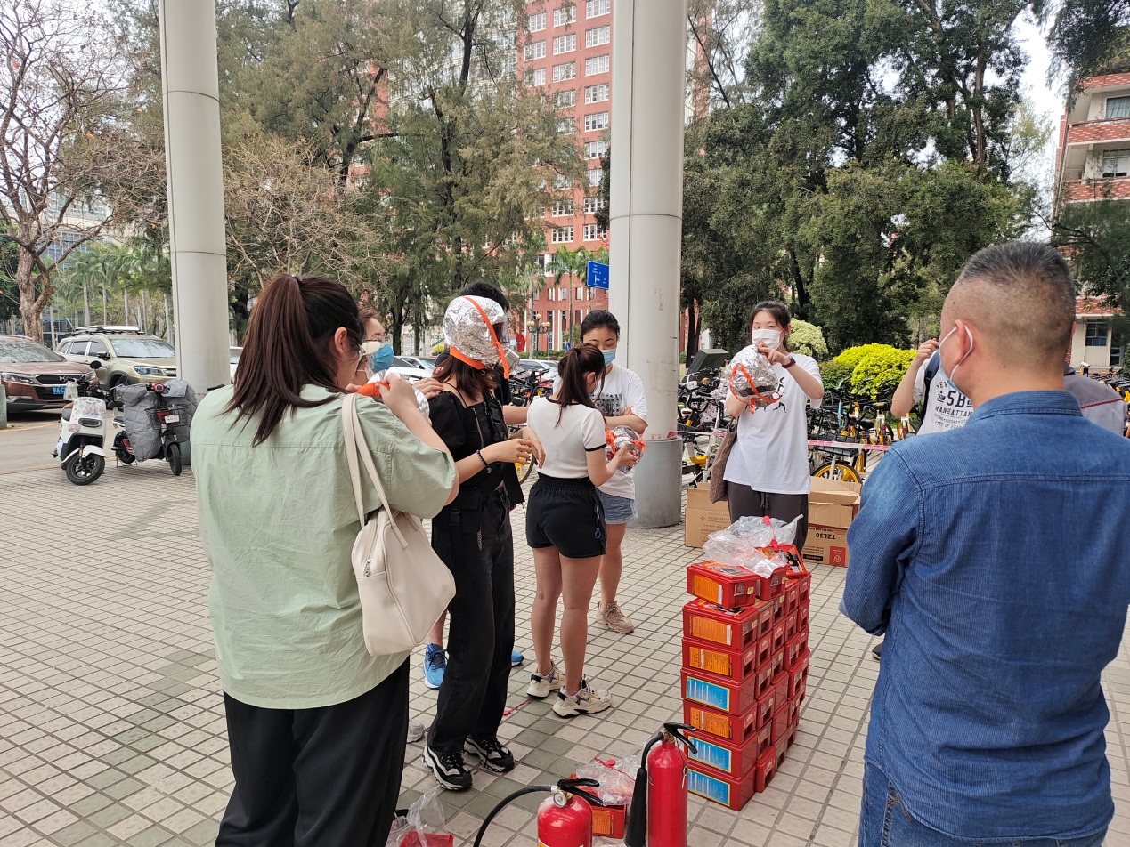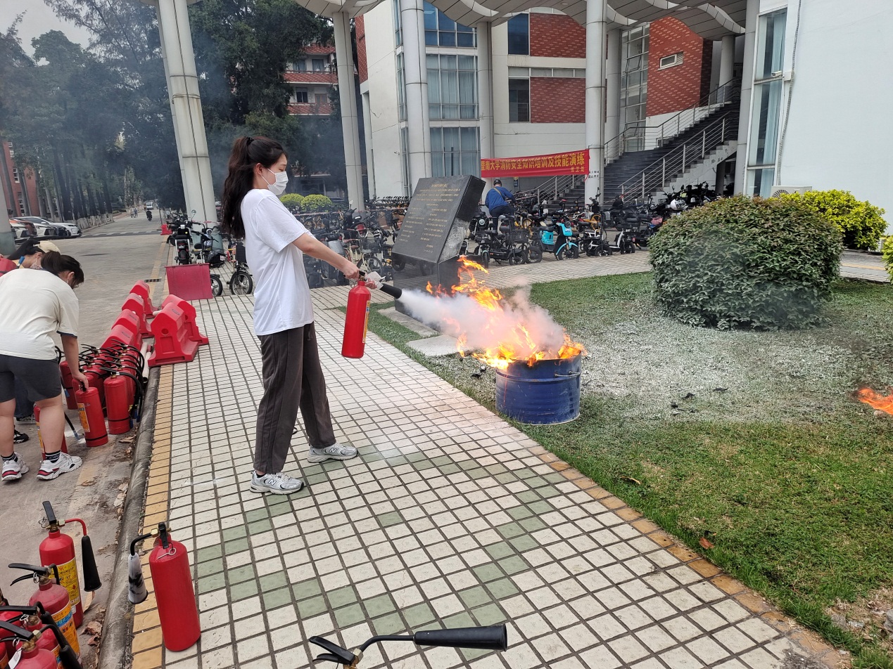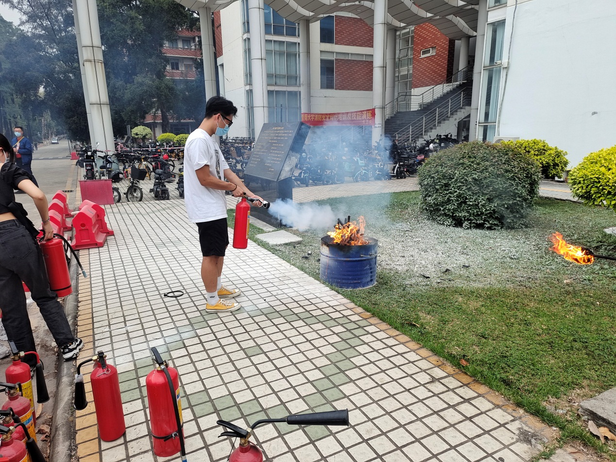 为进一步强化师生们的消防技能,消防科老师们针对校园常见的干粉灭火器和二氧化碳灭火器做了详细的使用说明,并示教了防毒面具、干粉灭火器、二氧化碳灭火器的正确使用方法。现场准备了明火,在消防科老师们的指导下,公司师生有序进行了实操。