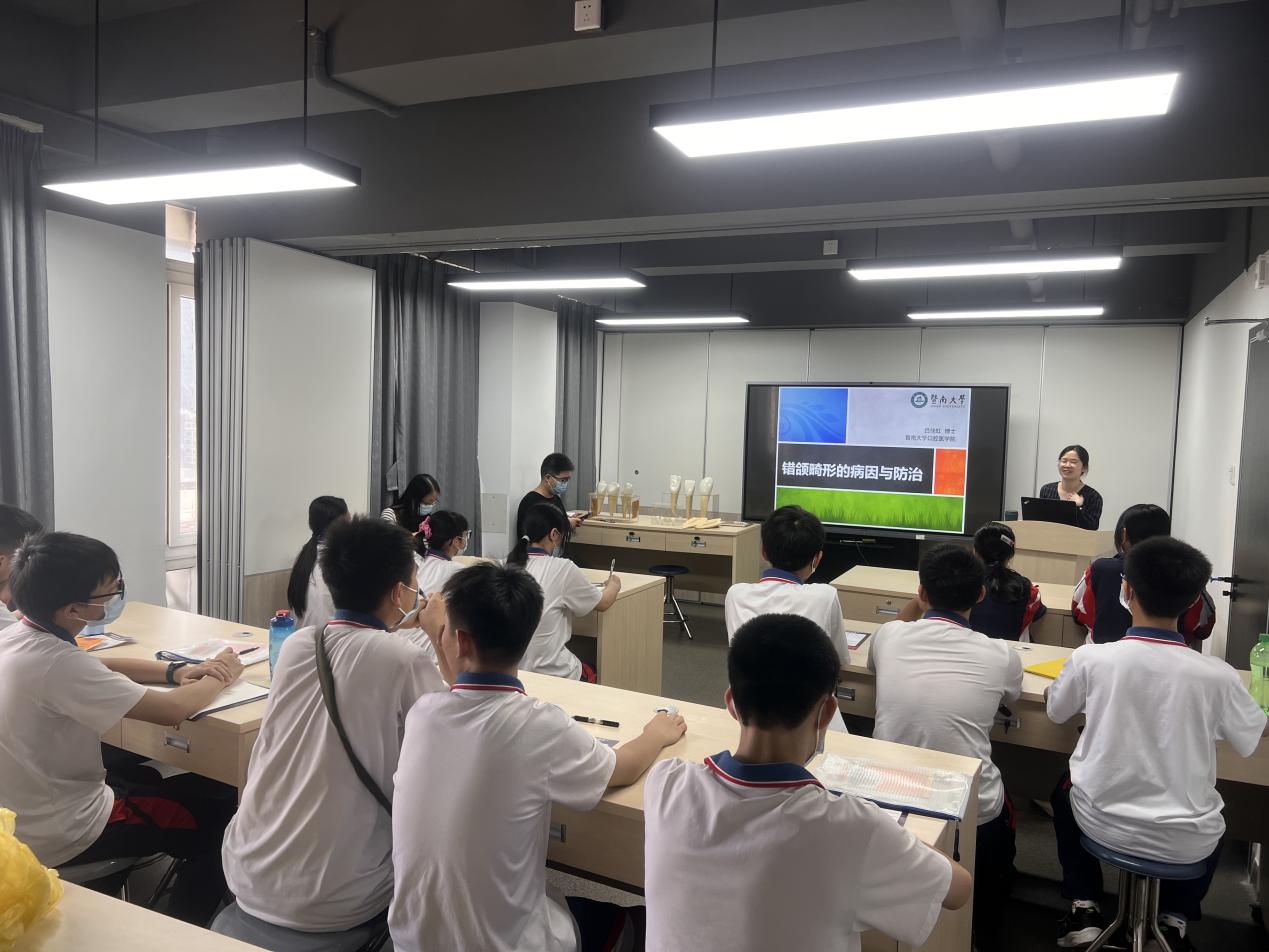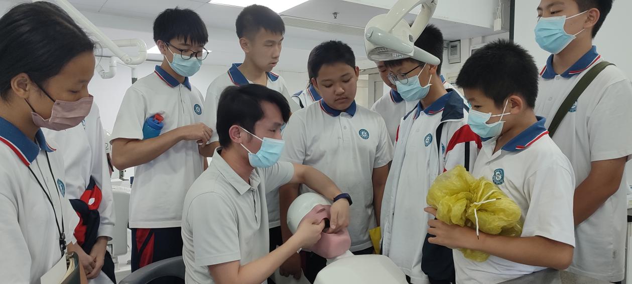 黄仁龙老师带领同学们实地参观了标本室和仿真头模实训室,向同学们悉心讲述了不同年龄牙齿的特点以及牙齿内部结构。在仿真头模实训室,同学们切身感受了临床牙医的培训过程。一名医员工需要经过千百次的模拟实训才能走上临床,成为合格的医生。通过本次研学活动,附中同学们不但收获了实用的口腔健康知识,还深切感受到一名牙医所肩负的责任和使命。